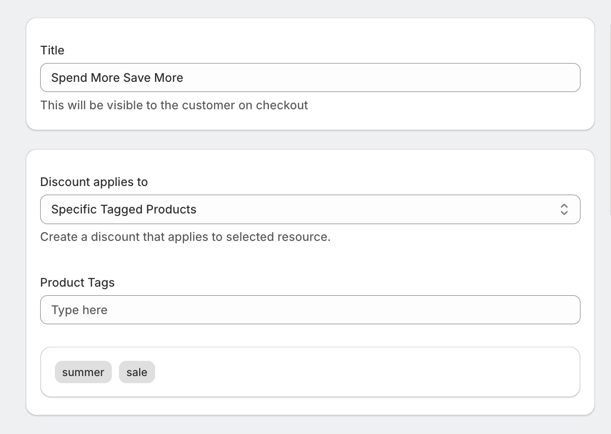 If a product has the tag "summer-sale", only those products will count toward the cart total discount.