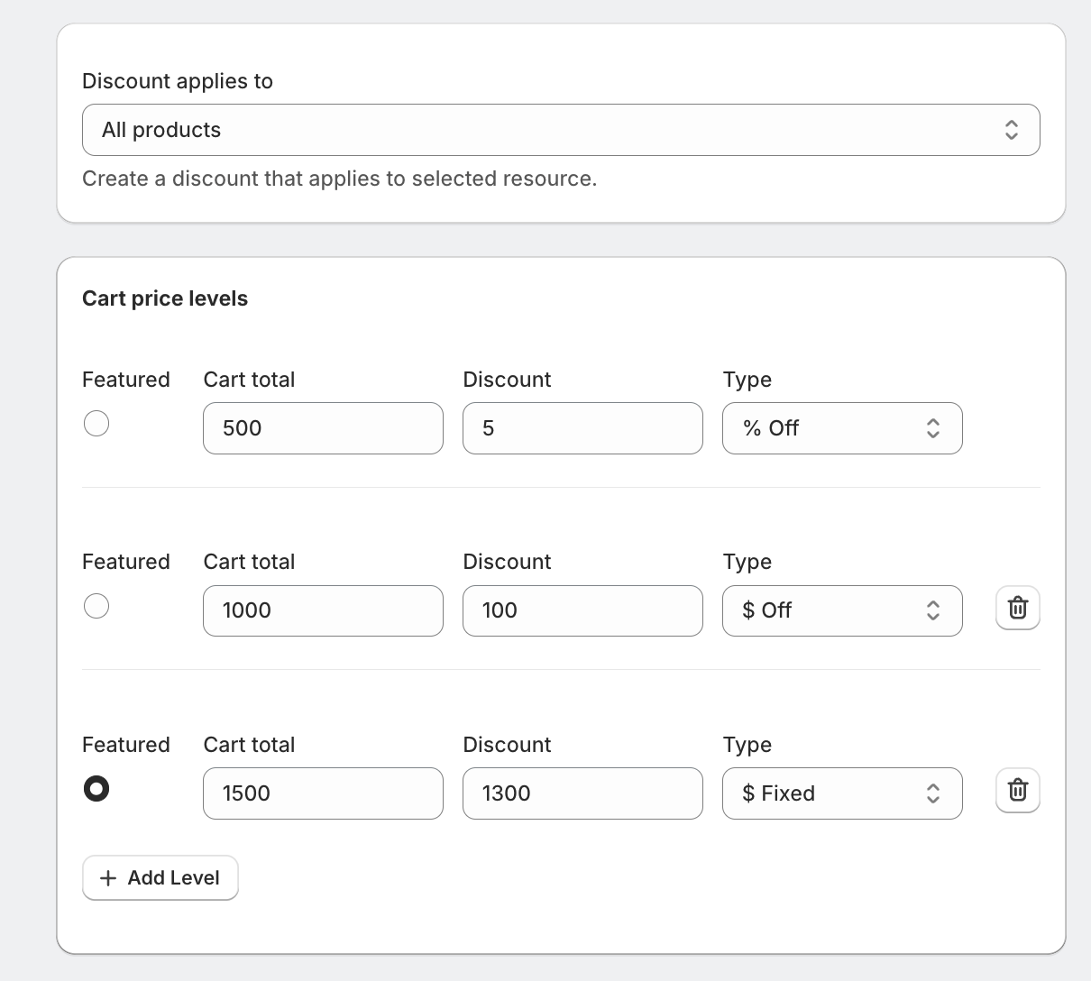 Merchants can add multiple tiers depending on their promotional strategy.