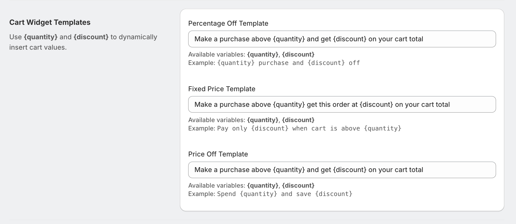 These templates control how the discount notification appears on the cart page once the promotion is active.