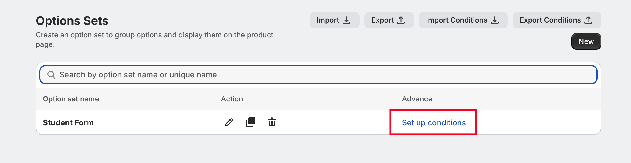 Go to the Option Sets section in the app.
