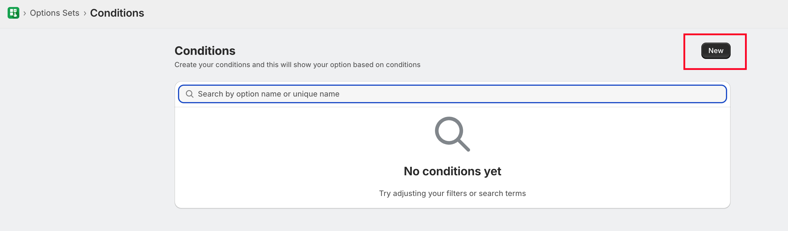 Open the specific Option Set where you want to apply the condition.